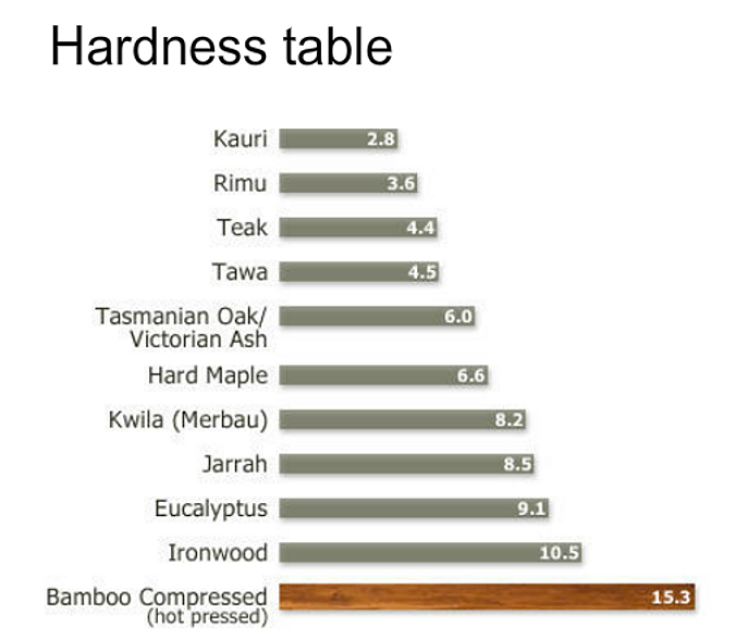 Results from numerous tests carried out globally has shown different styles of Bamboo flooring have differences in hardness. Compressed bamboo is the hardest type of bamboo flooring. It is 80% harder than Kwila. While most natural ... Access Doc